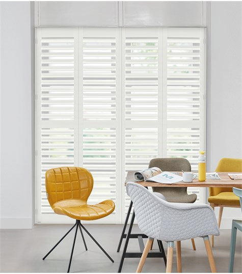 Alle gordijnen worden standaard afgewerkt met een geïntegreerd loodkoord aan de onderzijde en kunnen in 1 of in 2 delen worden opgehangen. Je kunt de gordijnen bestellen met een enkele plooi, dubbele plooi of wave-plooi.